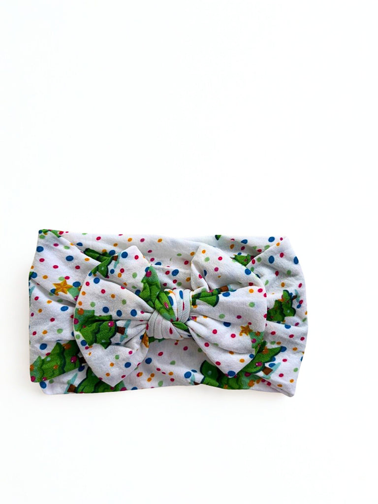 Wrap your little one in holiday cheer with our Christmas Tree Print Headwrap! 🍭🎄