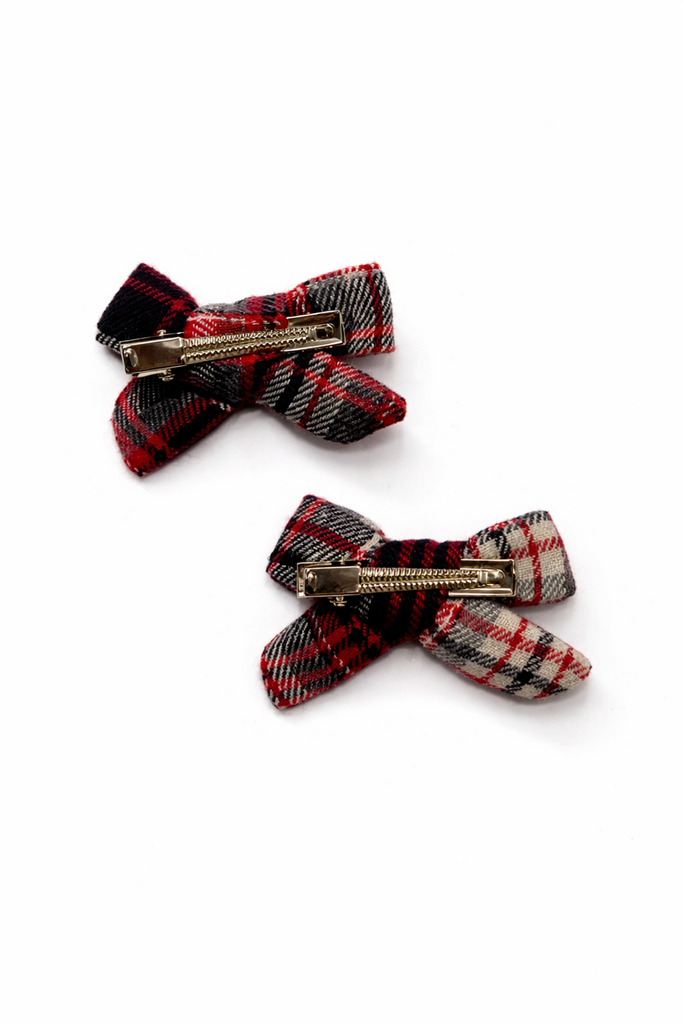 Set of 2 Plaid Knot Bow Alligator Clips – Multicolor
